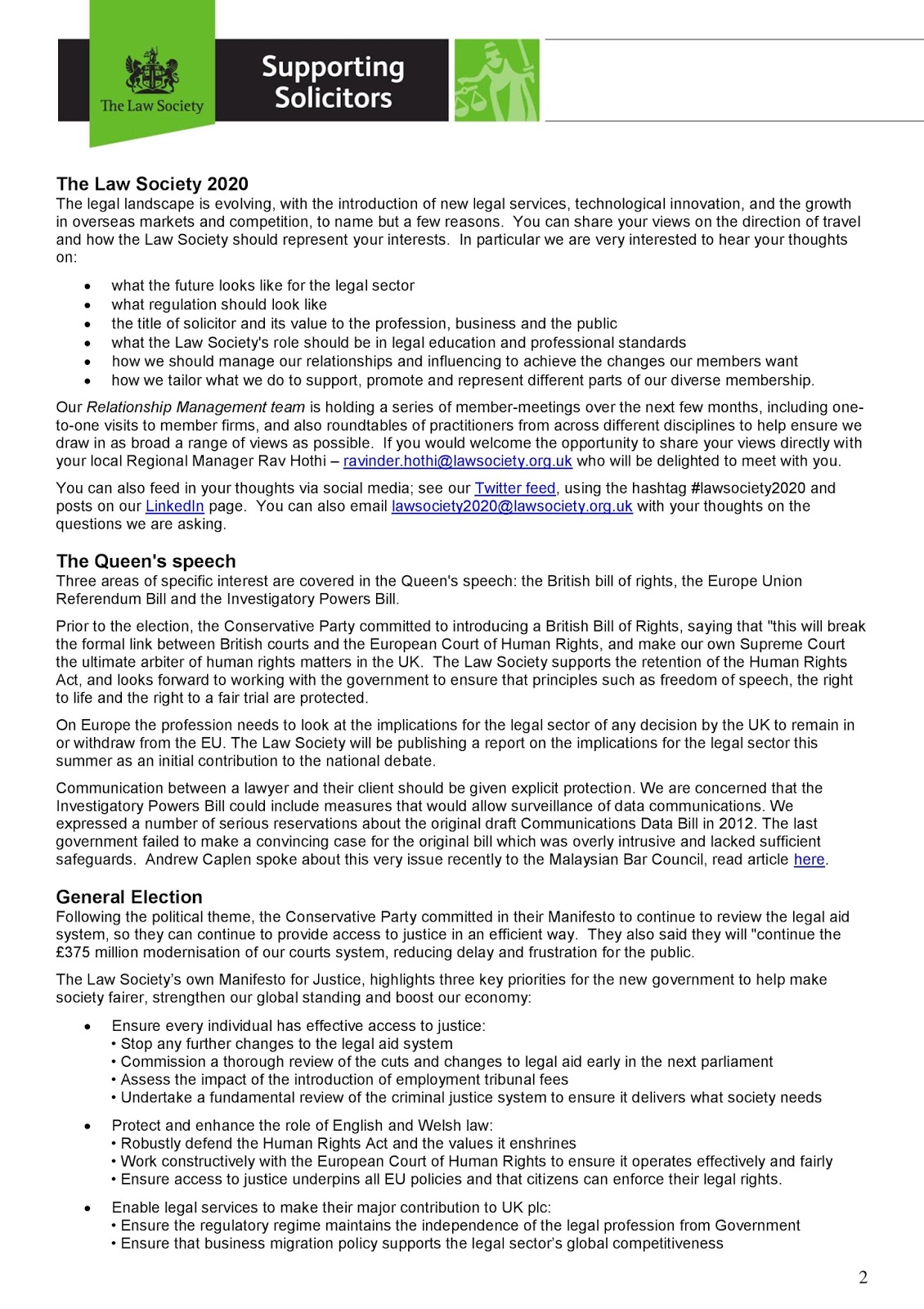 writing will be considered by a Legal Adviser, who will decide whether to